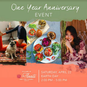 Join me on Saturday, April 22, EARTH DAY, from 2 p.m. to 5 p.m., to celebrate the One Year Anniversary of Village at La Floresta in Brea. Enjoy live music, fashion shows, fitness exhibitions, cooking demonstrations by Chef Jen of Whole Foods Market, kid-friendly activities, a photo booth, a braid, lipgloss and polish change bar by Polished Perfect, and more. And, it's all FREE!