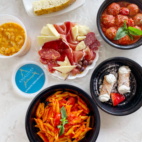 Angelina’s To-Go offers Neapolitan wood-fired pizzas, shared appetizers, signature entrees and family-style portions of pasta including lasagna and penne bolognese. There’s also a walk-up marketplace where diners can purchase fresh pasta, house sauces, Italian pantry items and wines. Cocktails to-go includes negronis and old fashioned.