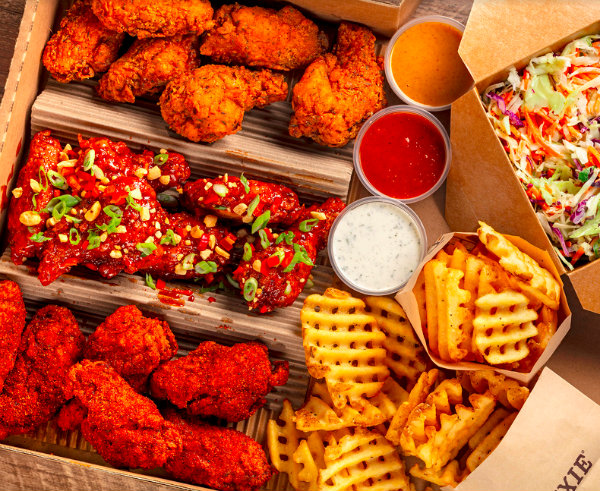 Best known for its Fried Chicken & Waffle Sandwiches, Bruxie now offers Chicken Wings in three flavors – Original Seasoned, Spicy Red Rub, and Gung-Ho Glazed. The large, meaty wings have been given the full-on Bruxie flavor experience: an overnight marinade in buttermilk, hand-breading in Chef Kelly’s own spice blend, and then fried to order, never pre-cooked.